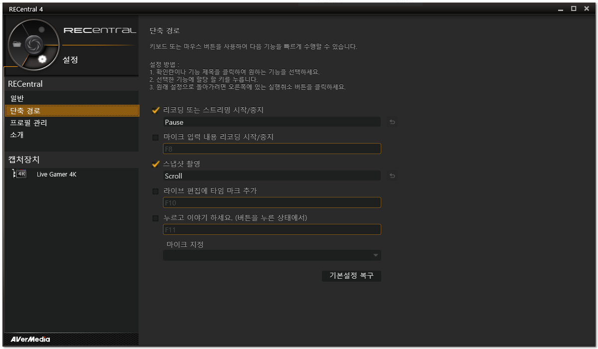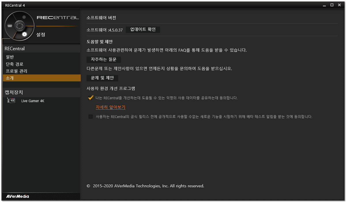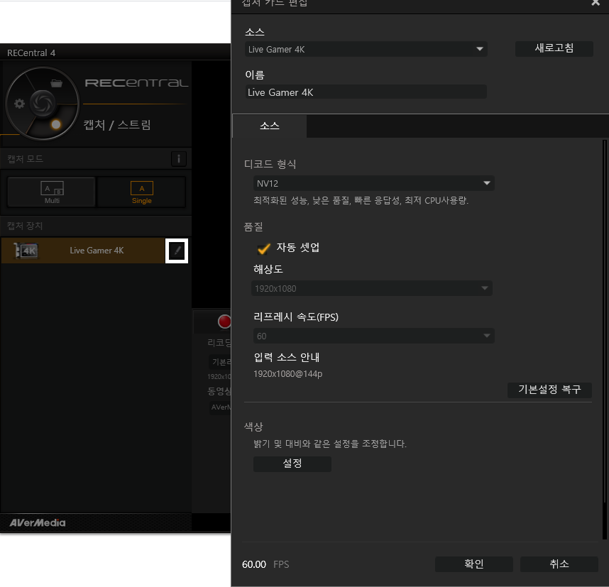 AverMedia Live Gamer 4K -GC573라는 이름으로 구글링을 해보시면 Driver와 Application을 쉽게 찾으실 수 있습니다. 드라이버부터 깔고 장치를 잡아주고 (드라이버만 깔면 쉽게 가능합니다.) RECentral이라고 불리는 어플로 해당 장치를 운영하게 됩니다.